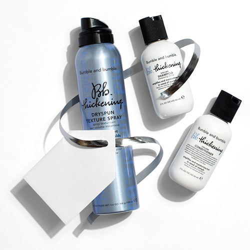 Take your holiday hair to new heights with The More, The Merrier set. Includes the Bumble Thickening Volume Shampoo, Thickening Volume Conditioner, and Thickening Dryspun Texture Spray.